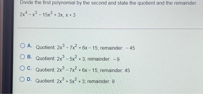 Solved Quiz Chapter 4 Quiz Divide The First Polynomial By Chegg Com